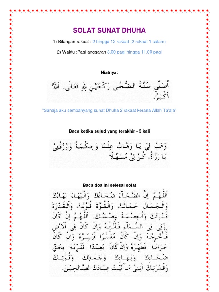 Related : Niat Solat Sunat Dhuha / Sholat dhuha adalah sholat sunah yang dilakukan setelah terbitnya matahari hingga sebelum waktu sholat zuhur..