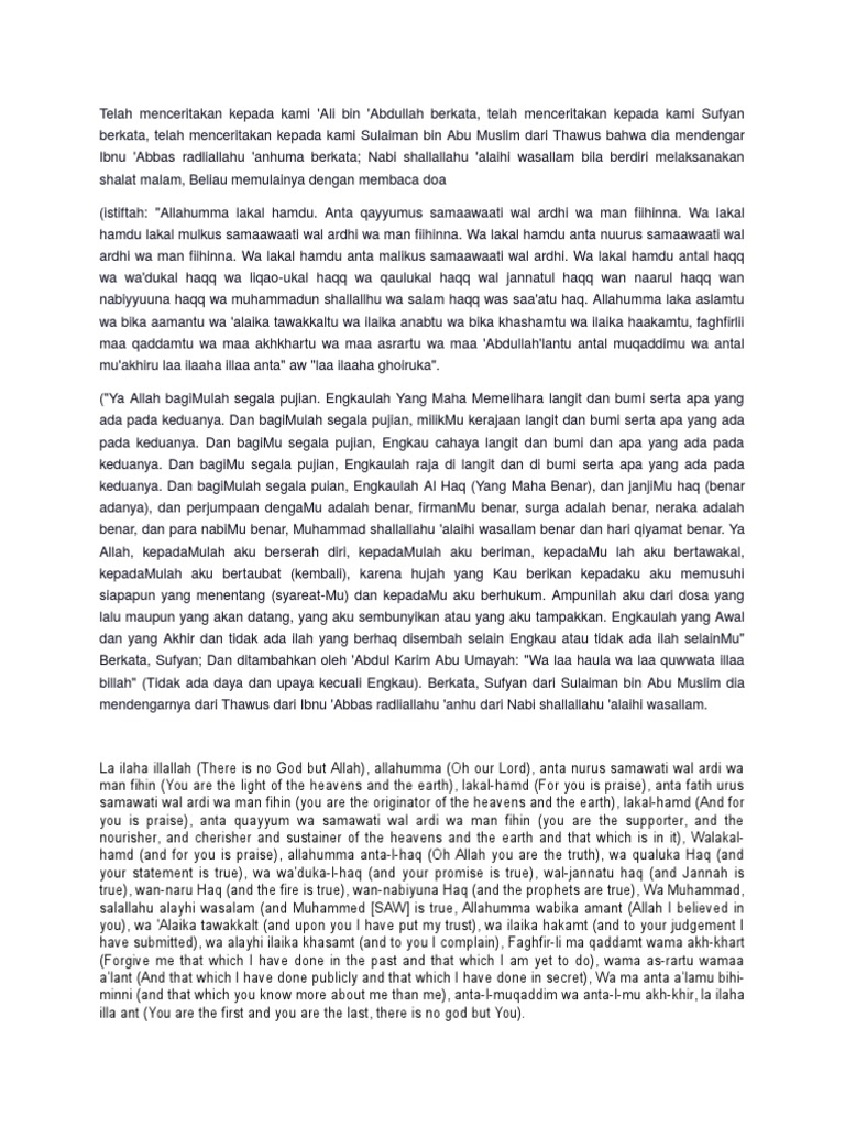 Segala puji bagi allah swt dengan segala rahmatnya dan tak lupa shalawat serta salam semoga. Diriwayatkan dari ibnu abbas, ia berkata, nabi merangkulku. Maka dengan tawakkal kepada allah berangkatlah nabi ibrahim meninggalkan rumah membawa hajar dan ismail yang diboncengkan di atas untanya tanpa nabi ibrahim berkata dalam doanya: Doa ini dibaca oleh nabi muhammad saw untuk abdullah ibnu abbas atau dikenali sebagai ibnu abbas. Adalah bagaikan pernyataan atau kenyataan.