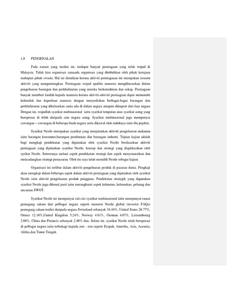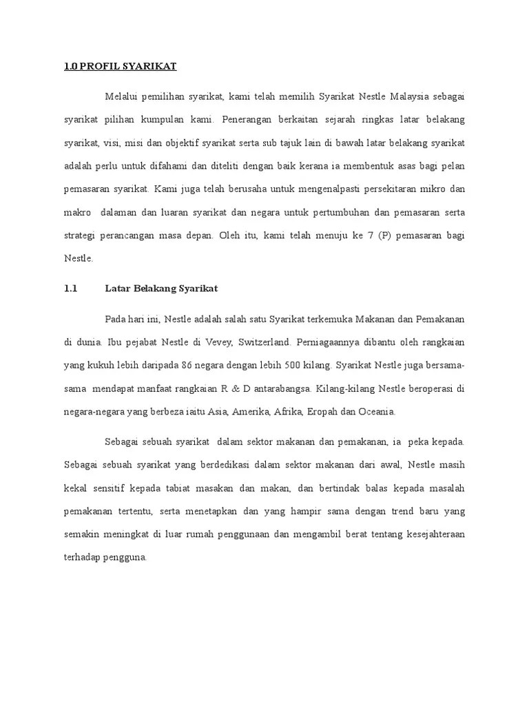 Nestlé (malaysia) berhad registration no.: Perniagaan syarikat sdn bhd merupakan satu perniagaan yang didaftarkan dibawah akta syarikat 1965. Nestle (malaysia) berhad manufactures a few type of products that been sold in the market. The food & beverages segment includes junior foods, milk, breakfast cereals. Introduction the board of directors of nestlé (malaysia) berhad (the board) has adopted this oard harter (the harter) to outline the manner in which its constitutional powers …